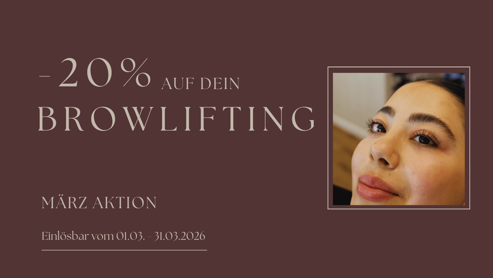 Im März erwartet dich bei uns ein besonderes Beauty-Highlight: Freu dich auf unser exklusives Browlifting-Special mit 20 % Preisvorteil. Gönn dir in nur 45 Minuten perfekt geformte Brows, mehr Ausdruck und einen Look, der deine natürliche Schönheit unterstreicht – jetzt zum Vorteilspreis von 52,00 € statt regulär 65,00 €.